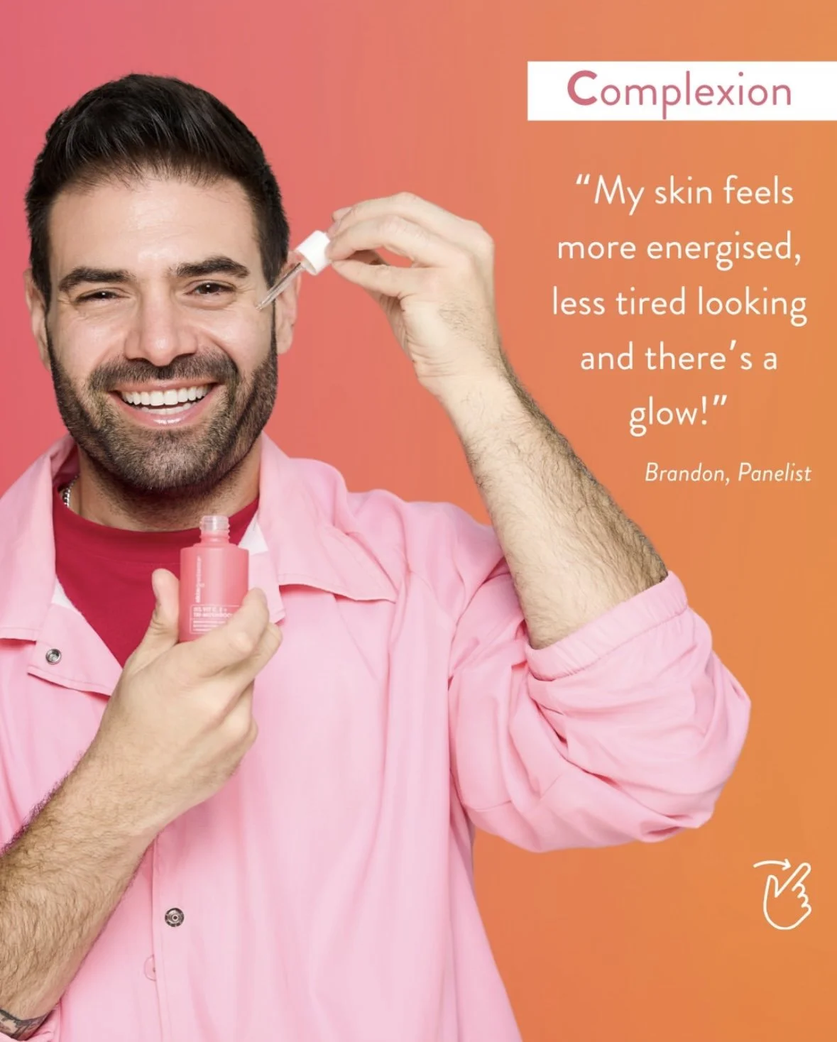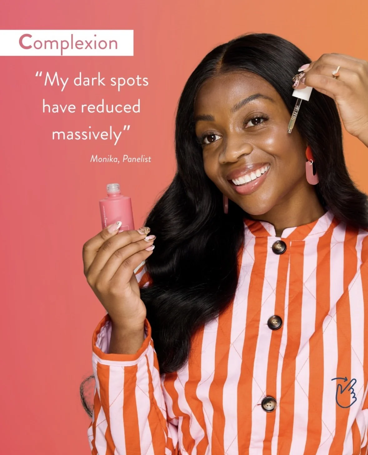 Bursts of pink and orange complementing the tones of the Skingredients Vit C serum. With owner Jen Rock and a lovely panel of Skingredients customers, we showcase a lovely range of tones and colours that compliment everyone.